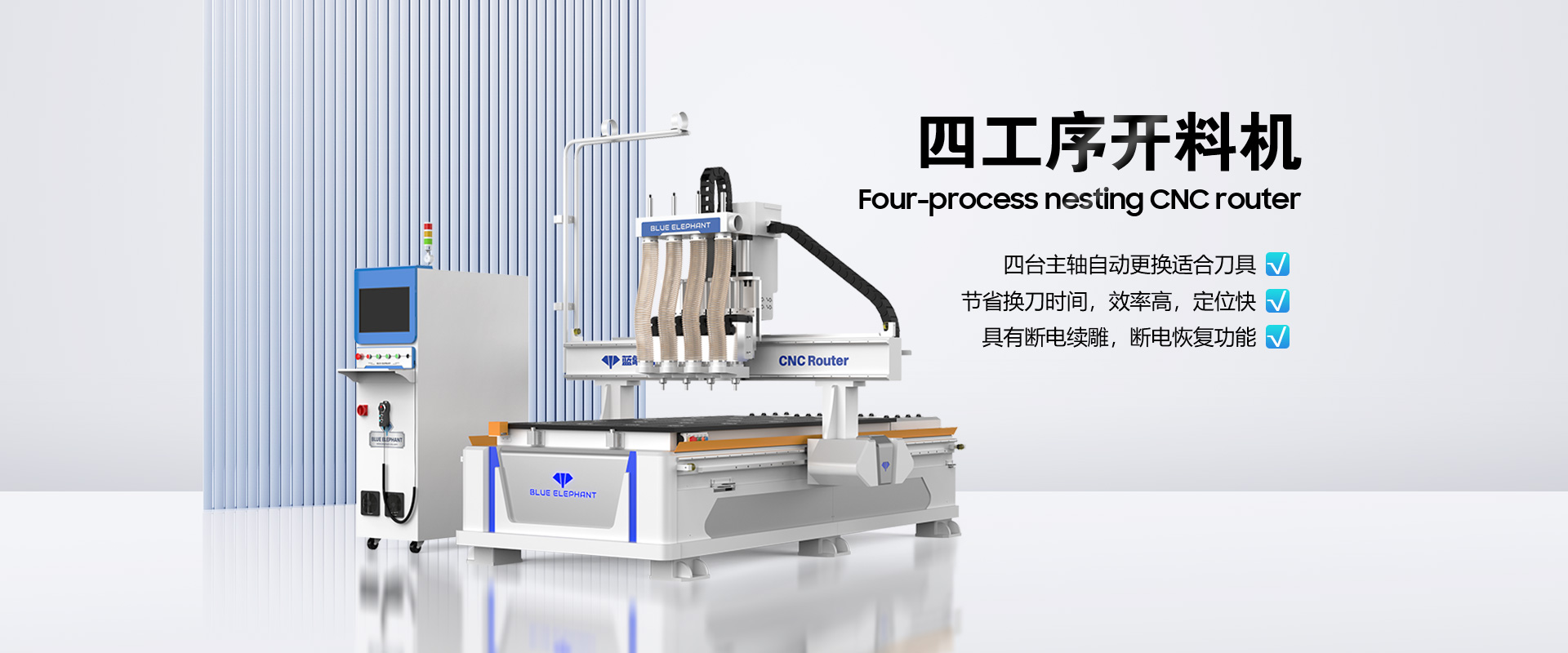 藍象數(shù)控(BLUE ELEPHANT)是一家自動化木工設(shè)備及數(shù)控設(shè)備研發(fā)、制造、銷售、售后服務(wù)于一體的高新技術(shù)企業(yè),為客戶量身打造個性化需求的自動化設(shè)備解決方案。主營全自動封邊機、板式家具生產(chǎn)線、數(shù)控開料機、木工開料機、數(shù)控排鉆設(shè)備等產(chǎn)品。